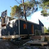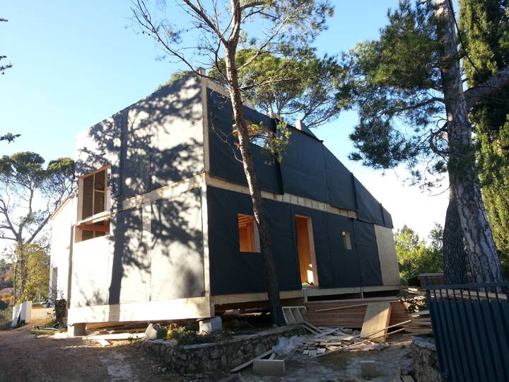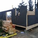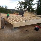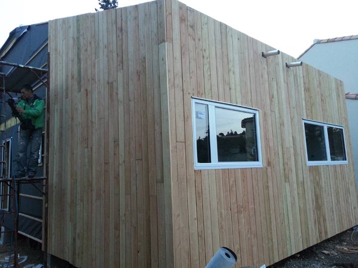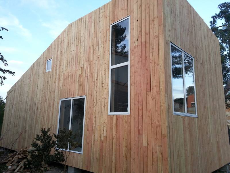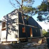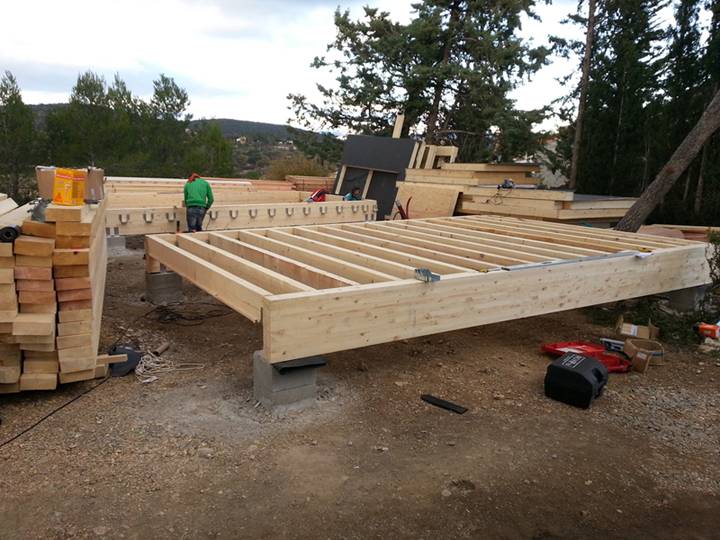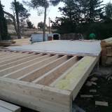 Casa din lemn executata de noi la finalul anului 2012 – inceput de 2013 in orasul Clermont L’Herault-Franta. Finisajul exterior este facut din larice nefasonat montat vertical cu distanta de 5 mm intre elemente. Casa nu are fundatie propriu zisa ea este amplasata pe opt stalpi din beton armat. Structura de lemn din care este confectionata podeaua este fixata pe patru grinzi din lemn stratificat 450×200 mm.