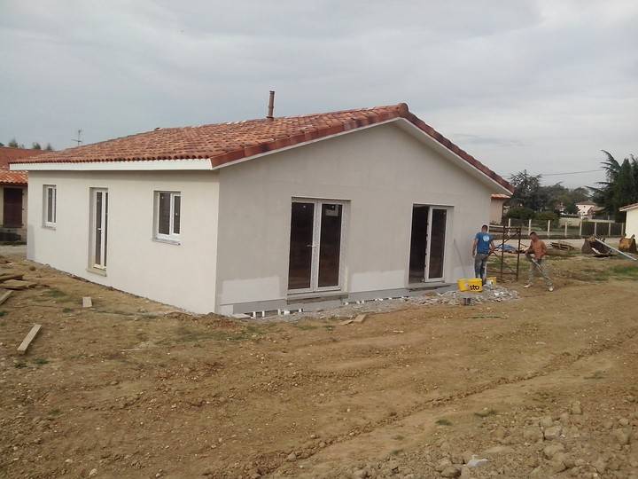 Complex de patru case situat in localitatea Saint Jory – Franta, inceput de noi in luna iunie 2013, finalizat la inceputul lunii octombrie. Amprenta la sol este de 104 mp/casa, termoizolatie exterioara polistiren de 4 cm si tencuiala decorativa, interior rigips.